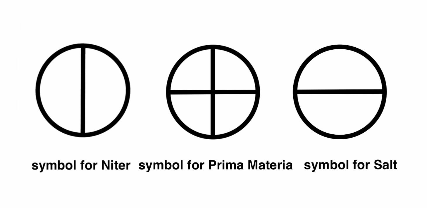 Venus is pictorially relevant in its opposition to Mars. The card attributed to Venus, the Empress, is also given the attribution of the alchemical Salt. The symbol for Salt is a circle with a horizontal line cutting it in half, our diameter-circumference relation once again. Salt is the feminine half of the Prima Materia, It’s opposing substance is Niter, which is the masculine. Niter’s symbol is the same only rotated 90 degrees, implying the masculine quality of the vertical.