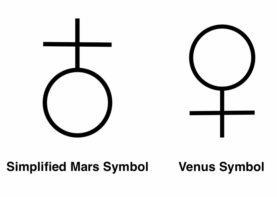 Through the Tower card we can infer an equivalence of the astrological Mars and Pey, and by proxy Pi. The Mars symbol can be broken up into two elements, the cross and the circle. The cross here is interchangeable with the square, both imply the number four, which is the number of matter. The circle is the spirit, as previously explained. Mars, pictorially, means the material cross weighing down the spiritual circle1. Venus, its opposite is then the spiritual uplifting the material. Mars is then the way in which the spiritual is formulated into the material, just as Pi is the constant that relates the radial circumference to the Cartesian diameter.